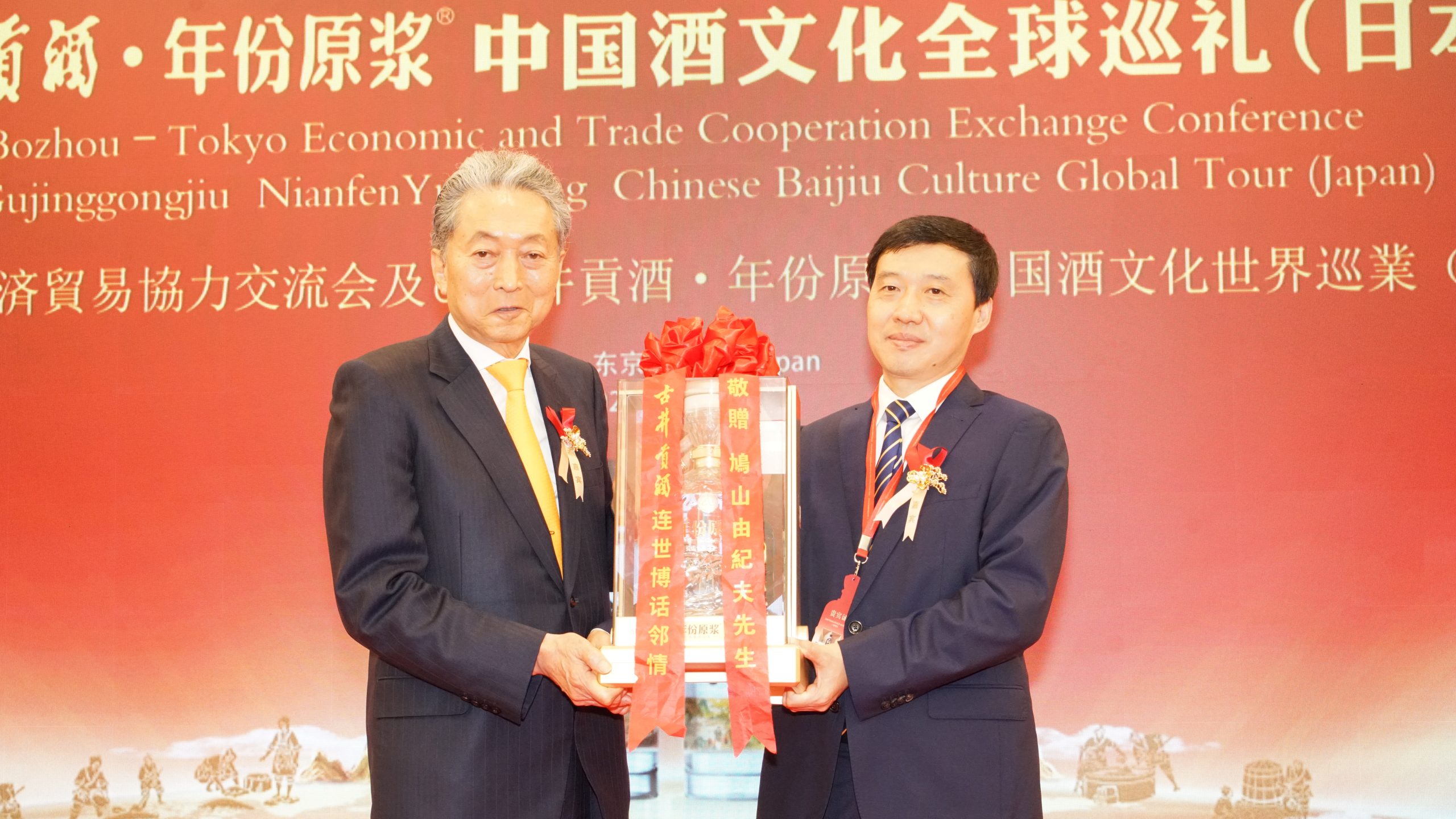 日本前首相鸠山由纪夫高度肯定古井贡酒在中国白酒文化国际推广上所取得的成绩,热情称赞古井提出的“酒是超过国界的世界语言”,表示自己的理念之一是“友爱”,希望今后进一步借助古井贡促进日中两国民间的“友爱”交流。他相信通过亳州与东京之间的城市合作,古井贡酒的浓香将为中日地方层级的经贸合作与文化交流开启全新的篇章。