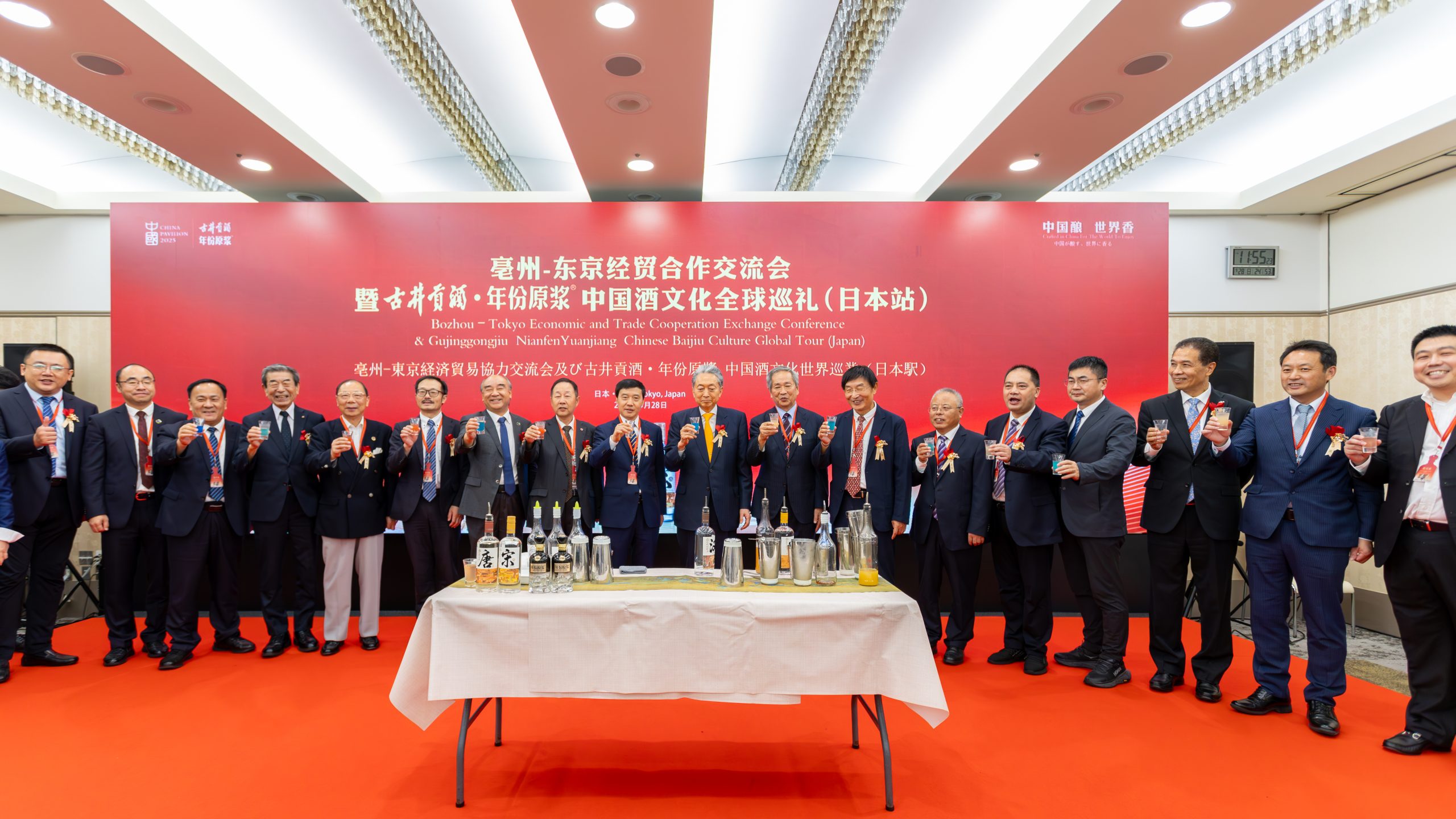 活动现场,日中友好会馆、中国驻日机构、日本政经界相关代表、亳州市政府代表团、日本徽商协会代表、古井代表团与媒体嘉宾齐聚一堂,以一杯 “中国酿”年份原浆古20 为纽带,共同见证这场联结亳州与东京的跨国经贸文化交流盛事。