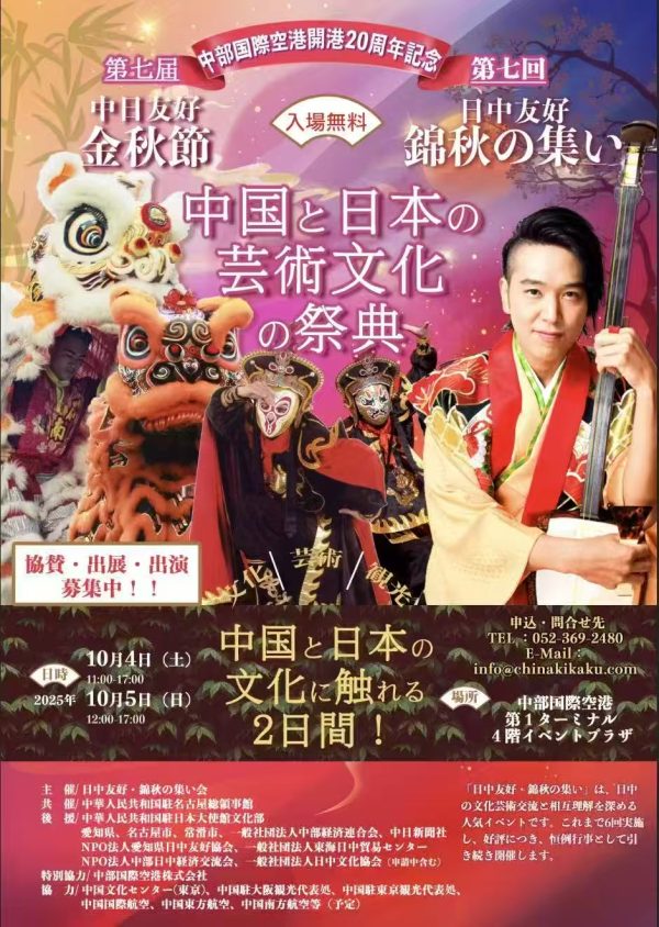 这一场中日文化与艺术的交流盛会,由日中友好暨金秋节委员会主办,中国驻名古屋总领馆共办,由中国驻日本大使馆文化部、爱知县、名古屋市、常滑市、中部经济联合会、中日新闻社、爱知县日中友好协会、东海日中贸易中心、中部日中经济交流会、日中文化协会后援,中部国际机场株式会社提供特别支持,东京中国文化中心、中国国际航空等机构或企业提供大力支持。