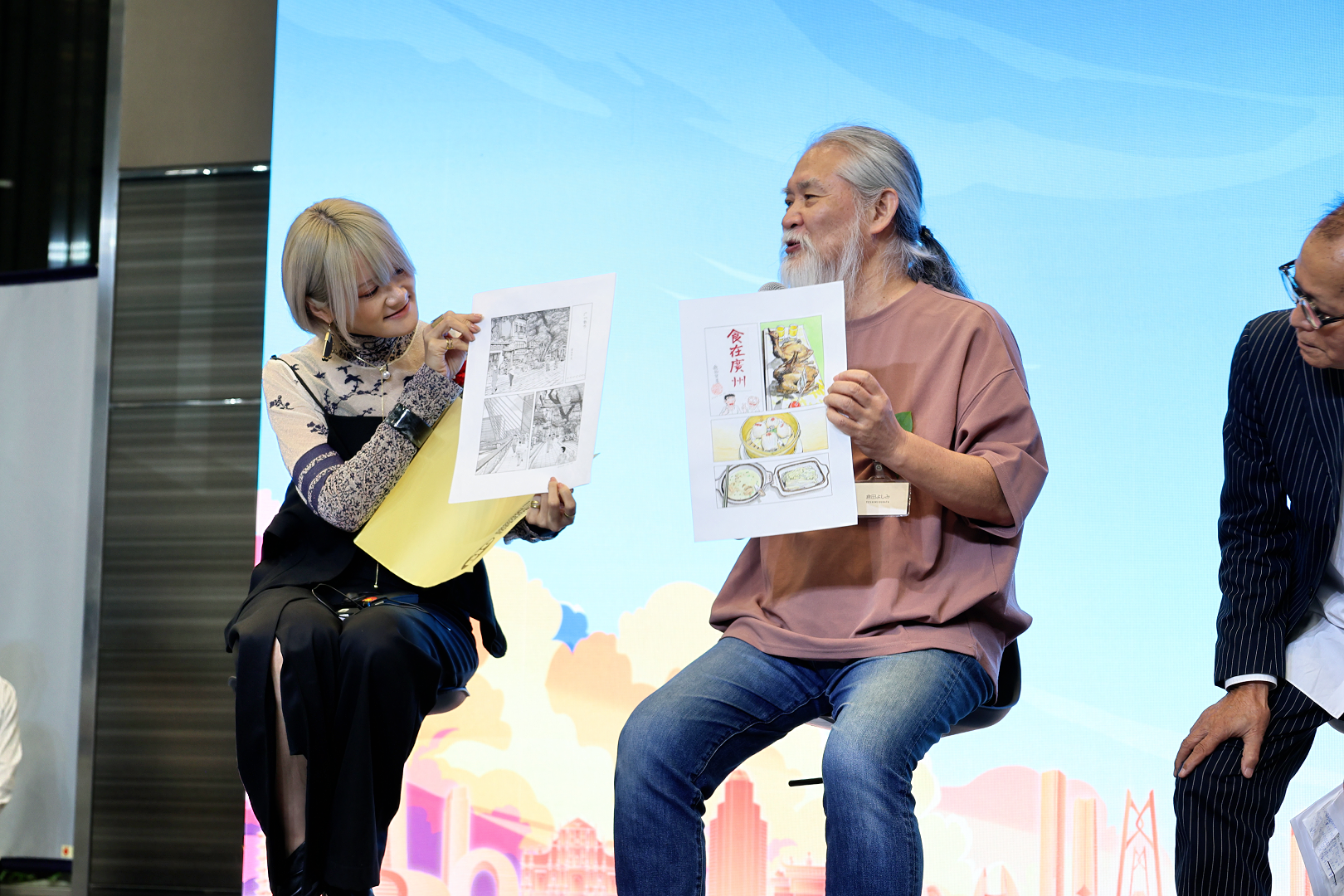 在“粤动新次元——中日动漫大师的广东发现之旅”主题沙龙上,里中满智子、关口贡、仓田芳美、米山舞、林帝浣等5位嘉宾,围绕中日动漫产业的文化共鸣与产业共振展开深入分享。仓田芳美还带来以粤菜为灵感的手绘稿,引发热烈掌声。