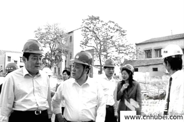 ▲文化部副部长陈晓光同志(左)检查场馆建设工作