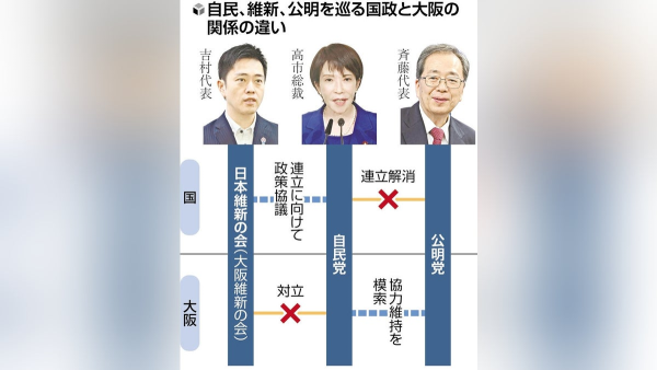 更为微妙的是——这场“电闪再婚”,前脚刚送走的“前妻”还没走远。公明党的椅子还温热着呢。人们忍不住怀疑:这算不算“婚外情式政权延命”?公明党当年是“温柔贤惠型”伴侣,懂得妥协、会算账,如今维新则是“叛逆激进型”,喊着“痛并改革着”的口号,显然不是一个家庭和睦的配方。