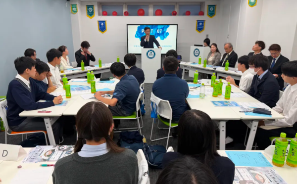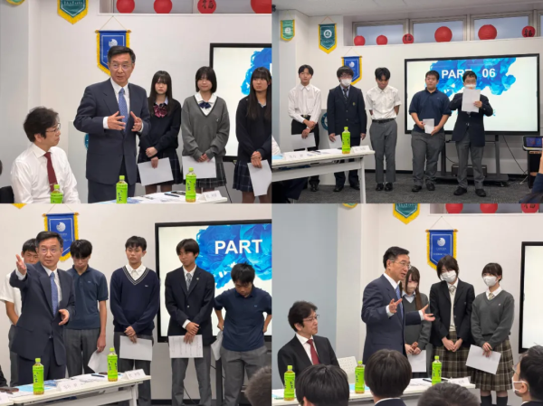 主办方随后播放了一段精彩的视频集锦,生动再现了同学们在中国的研学瞬间——走进校园课堂、探访历史古迹、体验非遗文化、感受现代都市。熟悉的画面唤起了大家的回忆,笑声与掌声交织,现场气氛热烈而感人。在随后的分组交流与分享环节中,学生代表纷纷上台,畅谈中日文化的异同与心得体会,并提出了对未来交流项目的真诚建议。杜柯伟公参也亲切回应了学生们的问题,与大家互动交流,赢得阵阵掌声。