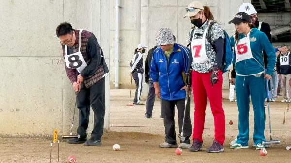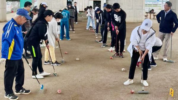 当日,共有30名选手参赛,主办方按照5人一组的方式将参赛选手分为6个队,进行大循环式比赛。新潟县门球联盟、新潟市门球协会的11名会员担任本次比赛的教练和裁判员,极大地提高了比赛的专业性和观赏性。在正式开球前,教练员结合有关门球比赛规则进行了实地讲解,并传授了球技。
