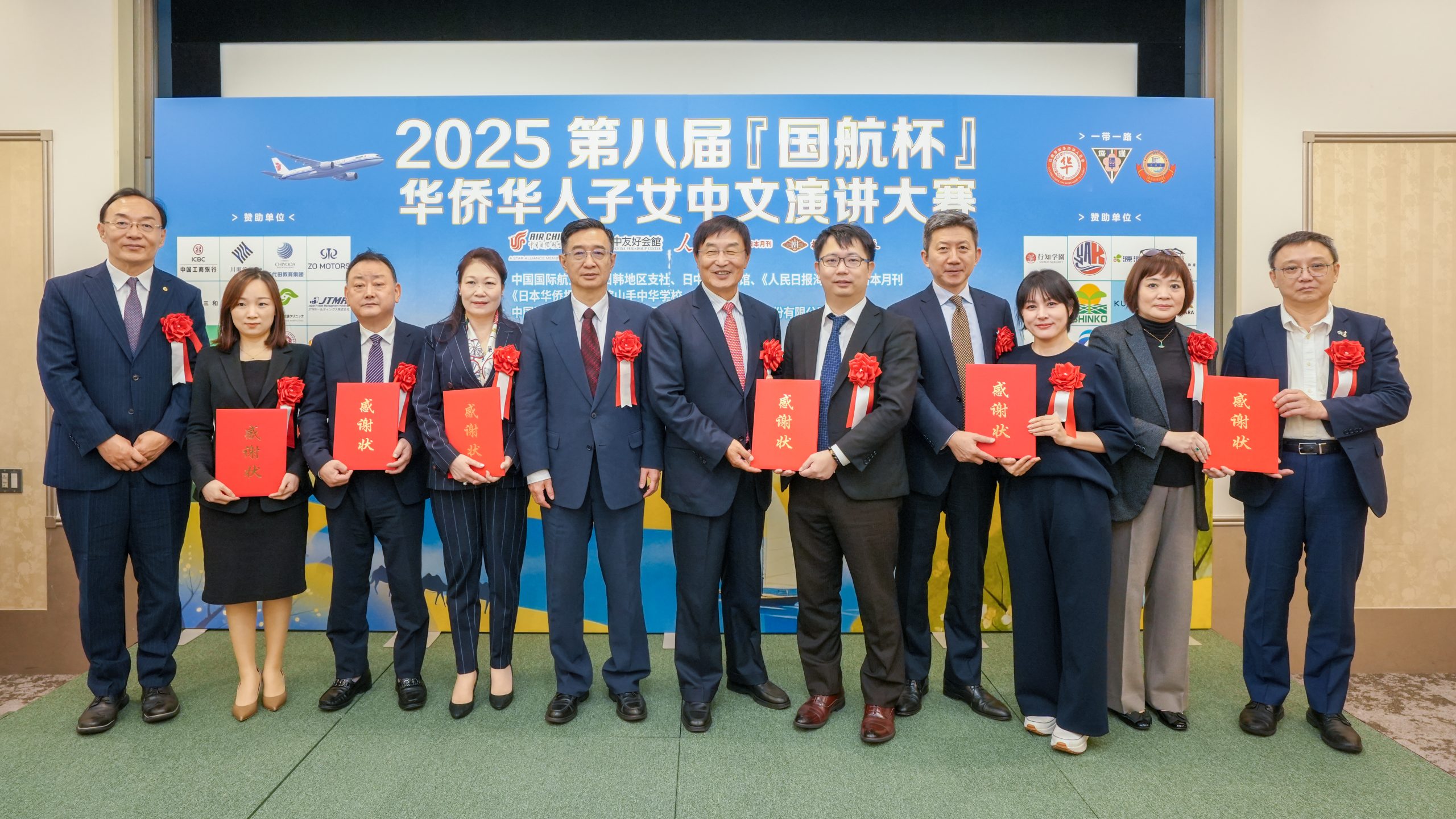 八届砥砺,初心不改。作为“中国唯一载国旗飞行的航空公司”,中国国际航空公司始终肩负着促进中日两国文化交流和人文交往的企业责任;驻日使领馆、侨社、教育机构等中日各界始终对大赛付出支持和关心;祥兴集团、木木不动产、川雨流痕、JTM集团、YAK控股、日本华文教育基金会、新桥虎之门健康CLINIC等侨企、机构给予八届大赛长久的热情支持,无愧“铁杆粉丝”的称号。正因为有了他们的长久而坚定地支持,才有了“国航杯”华侨华人子女演讲大赛百花齐放、桃李生辉的盛况。决赛现场,主办方向推动“国航杯”落地生根、葱郁成长的各界嘉宾颁发了感谢状。