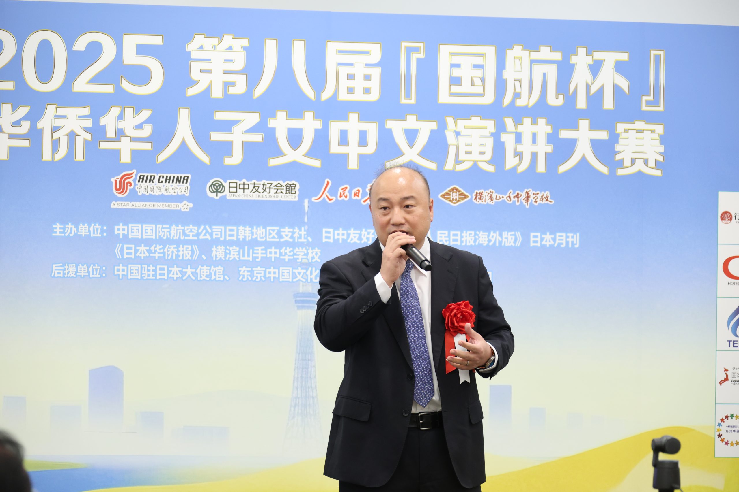 中国驻日本大使馆公参杜柯伟在致辞中首先对“国航杯”华侨华人子女中文演讲大赛历经八届初心不改的信念和意义表示赞许之意,对主办各方表达感谢之情。掌握中文,就能在更广阔的世界舞台上从容自信,也能更深入地理解自己的根脉,体悟文化的力量。华侨华人子女是国际民间交流中最自然最牢固的桥梁,杜柯伟公参代表大使馆提出“学好中文,筑牢根基”“友善交流,连通心灵”“讲好故事,深化共识”三条要求,冀望通过他们的声音,让世界“了解真实的中国,感受青春的活力”,并祝福选手们“在真诚的交流中收获友谊!”
