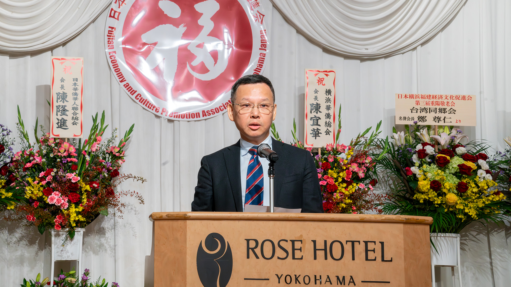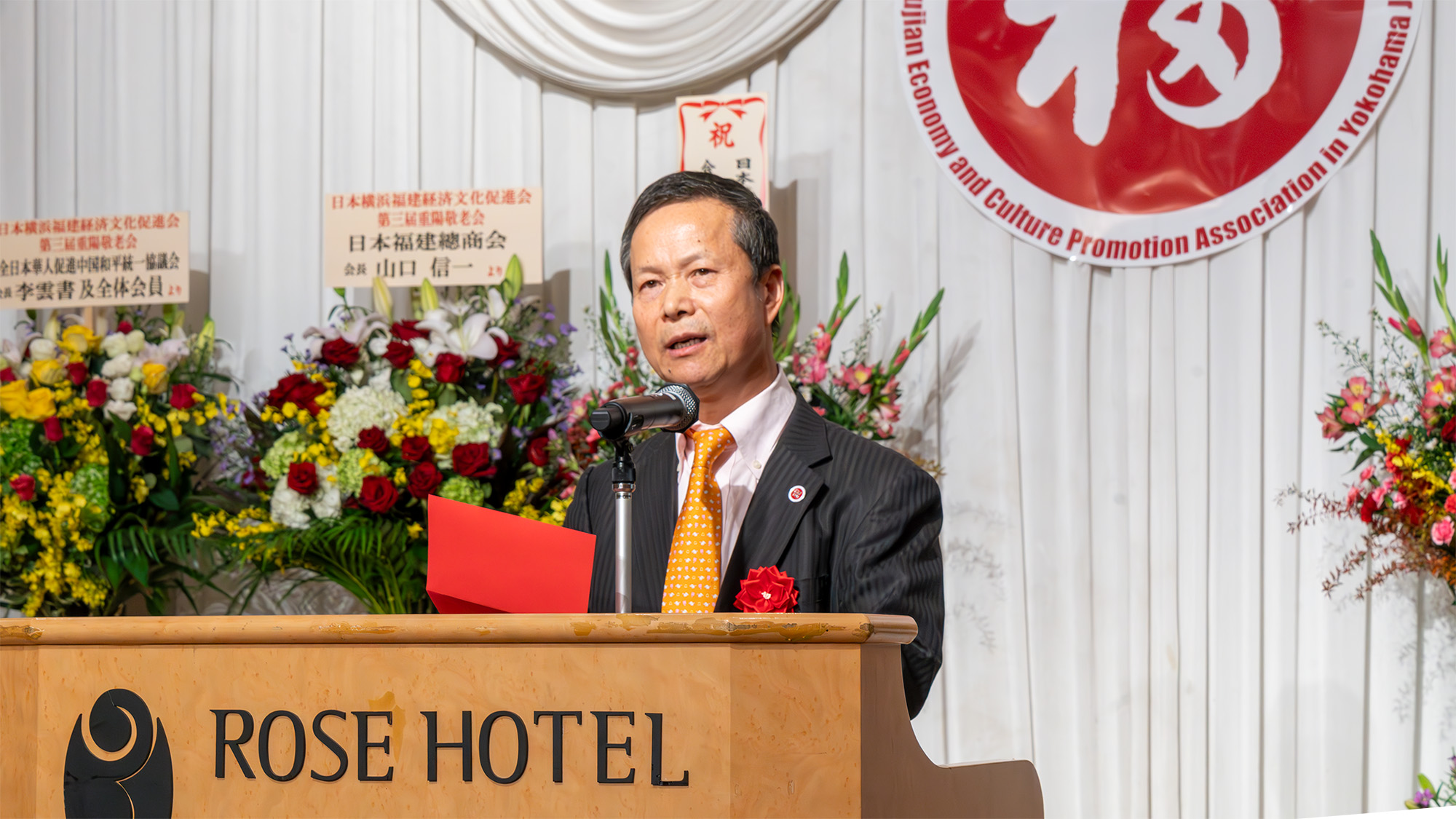 中国驻日本大使馆公参兼总领事陈巍出席活动并致辞。陈巍公参兼总领事亲切地用家乡话打招呼,以福建后代的身份历数福建当地多个与敬老相关的传统节日,并向在场的前辈及新老朋友致以美好祝福。他盛赞一代又一代侨胞的功劳与成绩,横滨中华街的繁荣,离不开新老侨胞持续的付出和努力。“每逢佳节倍思亲”,亲是一家亲。闽台一家亲,两岸血浓于水,他寄望两岸同胞共同推进祖国统一及民族复兴的大业。九九重阳,长长久久,九九重阳,九九归一!