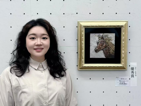 毕雯惠,东京福祉大学研究生院艺术福祉专业2025届毕业生。在东京福祉大学片冈浩教授指导下,她的毕业作品——铜板浮雕《飞翔2025》,荣膺第48届日本手工艺美术展“学生·弟子类”优胜奖。日本手工艺美术展,是由日本手工艺美术协会主办的专业类展览,迄今已成功举办48届。组委会通常在每年3月、4月间面向全日本启动参赛作品的征集,前后经过半年多时间的募集和审议,在当年10月初揭晓获奖名单。获奖作品于9月28日至10月5日之间在东京都美术馆集中展示。集中展示,不仅是对当年获奖者的肯定和鼓励,也是面向大众的一次重要推荐。