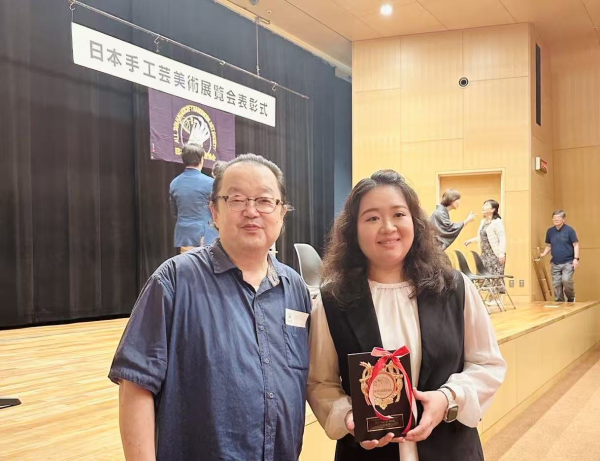 10月4日,48届日本手工艺美术展颁奖仪式在东京都美术馆举行,毕雯惠受邀参加,冈浩教授也赶赴现场与爱徒分享喜悦。