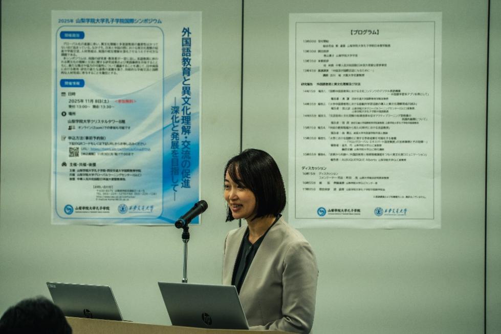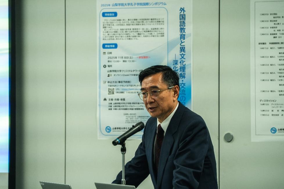 2025年11月8日,由山梨学院大学孔子学院与中国西安交通大学国际教育学院联合主办、山梨学院大学全球学习中心协办、中国驻日本大使馆教育处支持的“促进外语教育与跨文化理解和交流-以深化与发展为目标”的国际学术研讨会在山梨学院大学成功举办。