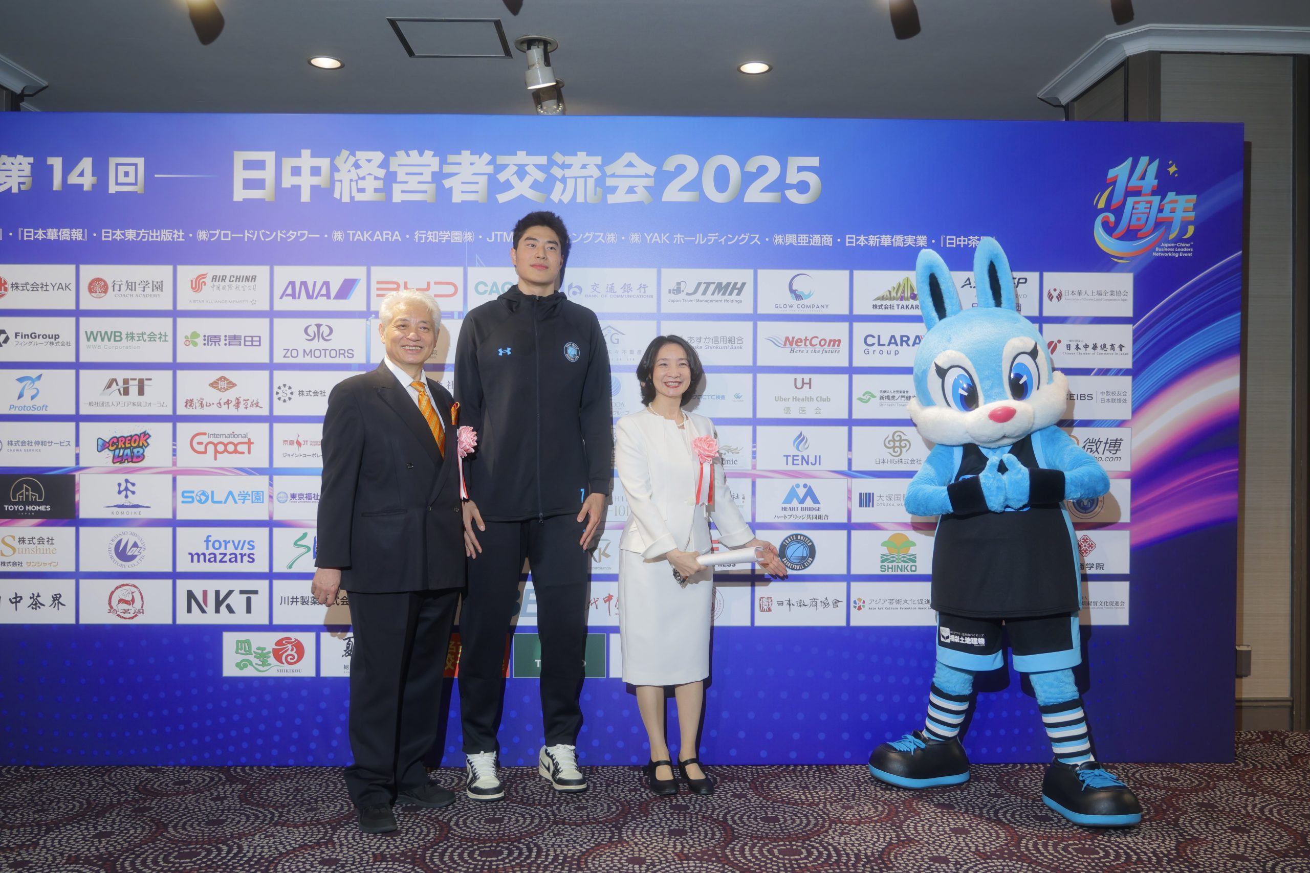 “体育,是一种超越国界与语种的媒介,希望篮球与体育为中日两国人民带来更多新的连接机会。”家本贤太郎致辞坚定了两国经贸从业者的信心,与他一同前来的TUBC首位中国籍、也是日本联赛首位由中国训练体系培养的外援篮球运动员任序航,为交流会现场带来一阵洋溢着青春活动与运动激情的新风。寓意开放包容、多元共赢的TUBC吉祥物“UNITE”,萌趣十足,带来阵阵欢笑。