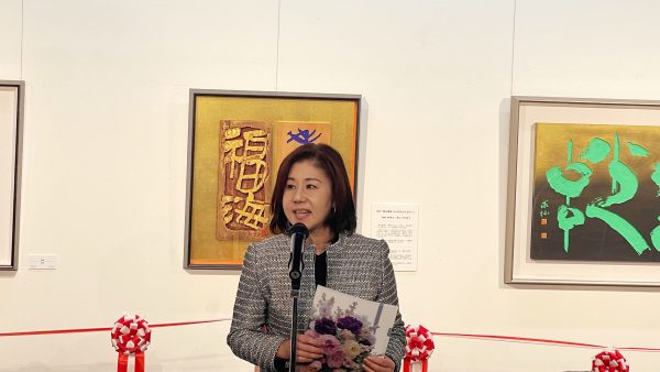 来自群马县的上毛新闻社读者局地域交流部部长富冈美惠代表当地媒体表达了对竹市求仙的敬意。她回忆起半个世纪前群马县首届刻字展上竹市求仙就参与其中,如今仍孜孜不倦地创作和指导后辈,并多次在群马县和新闻社一起举办刻字展。富冈美惠说,她深切感受到了刻字文化所蕴含的力量,也强烈感受到两位艺术家作品的独特魅力,她也衷心希望,通过这次展览,能有更多的人接触到两位大家的作品,从中日两国不同的文化土壤当中,感受到刻字艺术特有的魅力与感动。