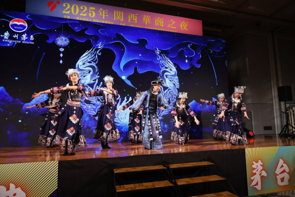 首先由本次活动的合作方贵州茅台特邀专业舞蹈团队演出贵州少数民族舞蹈。表演呈现苗族、侗族等传统舞蹈韵律,同时融入现代舞台表现手法,使文化表达更具国际化特色,将民族舞蹈的独特魅力展现得淋漓尽致,也展现了多元文化交流的深厚力量。