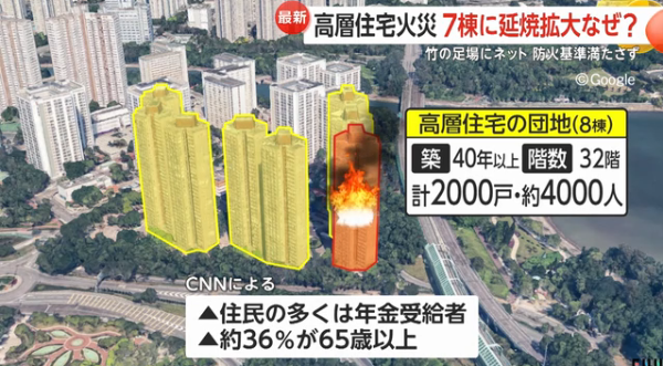 并且在日本,法律明令禁止在高层建筑修缮中使用竹制脚手架,外墙材料也必须通过严格的防火测试。但反观香港火灾现场,竹制脚手架和可燃的聚苯乙烯板成了火焰的”快速通道”,快速蔓延的外层火墙,截断了救援,也截断了逃生。