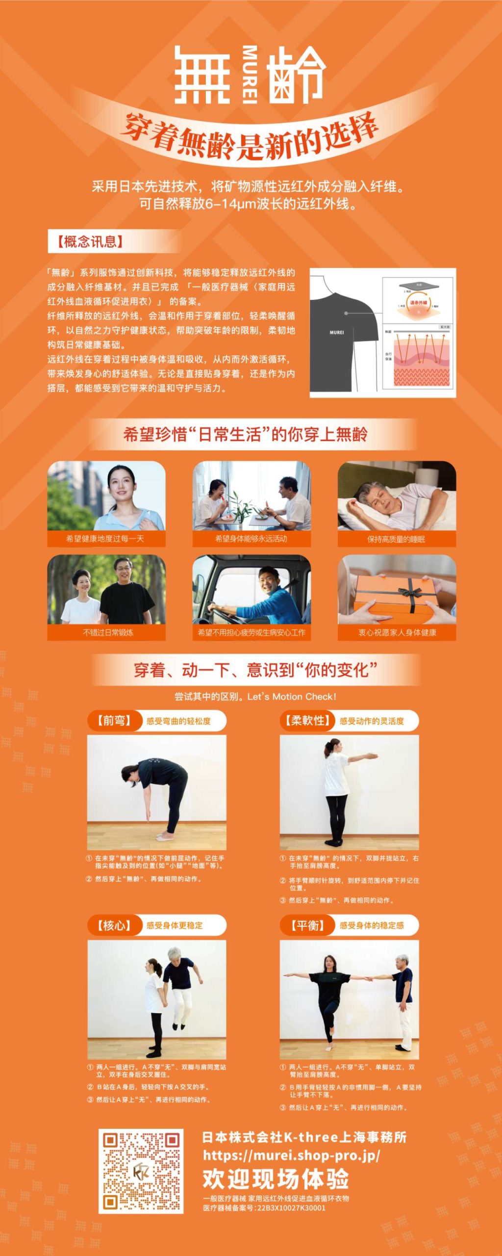 创新孕育希望,科技温暖生活。“無齢”远红外线活力衣,日本研发,日本工艺,日本制造,致力于为全球用户提供便捷、长效的健康穿着体验。