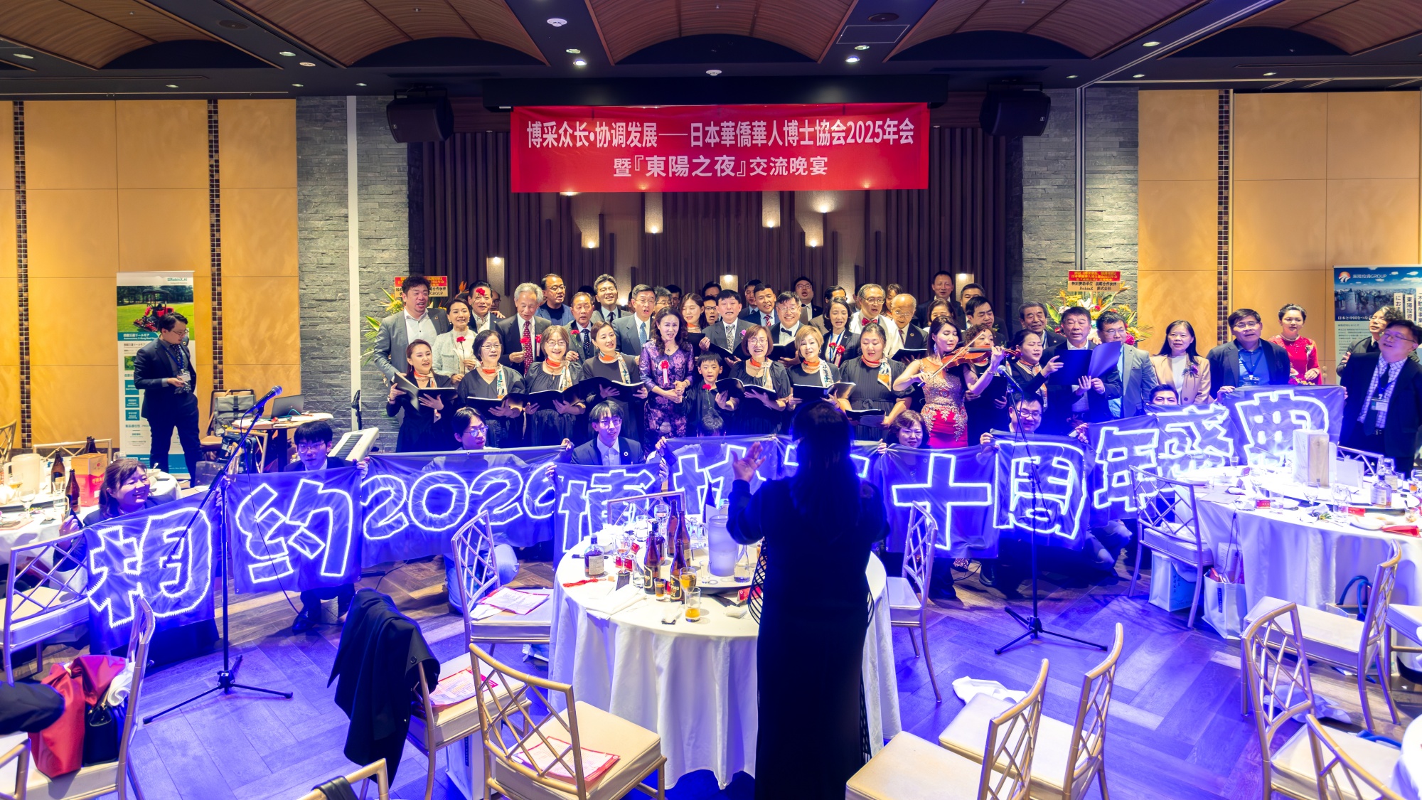 霜寒气清,红叶正盛。12 月7 日,日本华侨华人博士协会(以下简称“博士协会”)2025年会暨“东阳之夜”交流晚宴在东京上野东天红酒店成功举办。本次年会以“博采众长·协调发展”为主题,由株式会社东阳投资集团冠名赞助,吸引了170余位来自中日两国科技界、教育界、产业界和侨界的嘉宾出席,共同见证了此次年度盛会。现场嘉宾阵容强大,中国驻日本国大使馆教育处与科技处,以及多位中日友好团体、高校和科研机构的代表莅临,展现了嘉宾们对中日科技文化交流的高度重视与深厚情谊。
