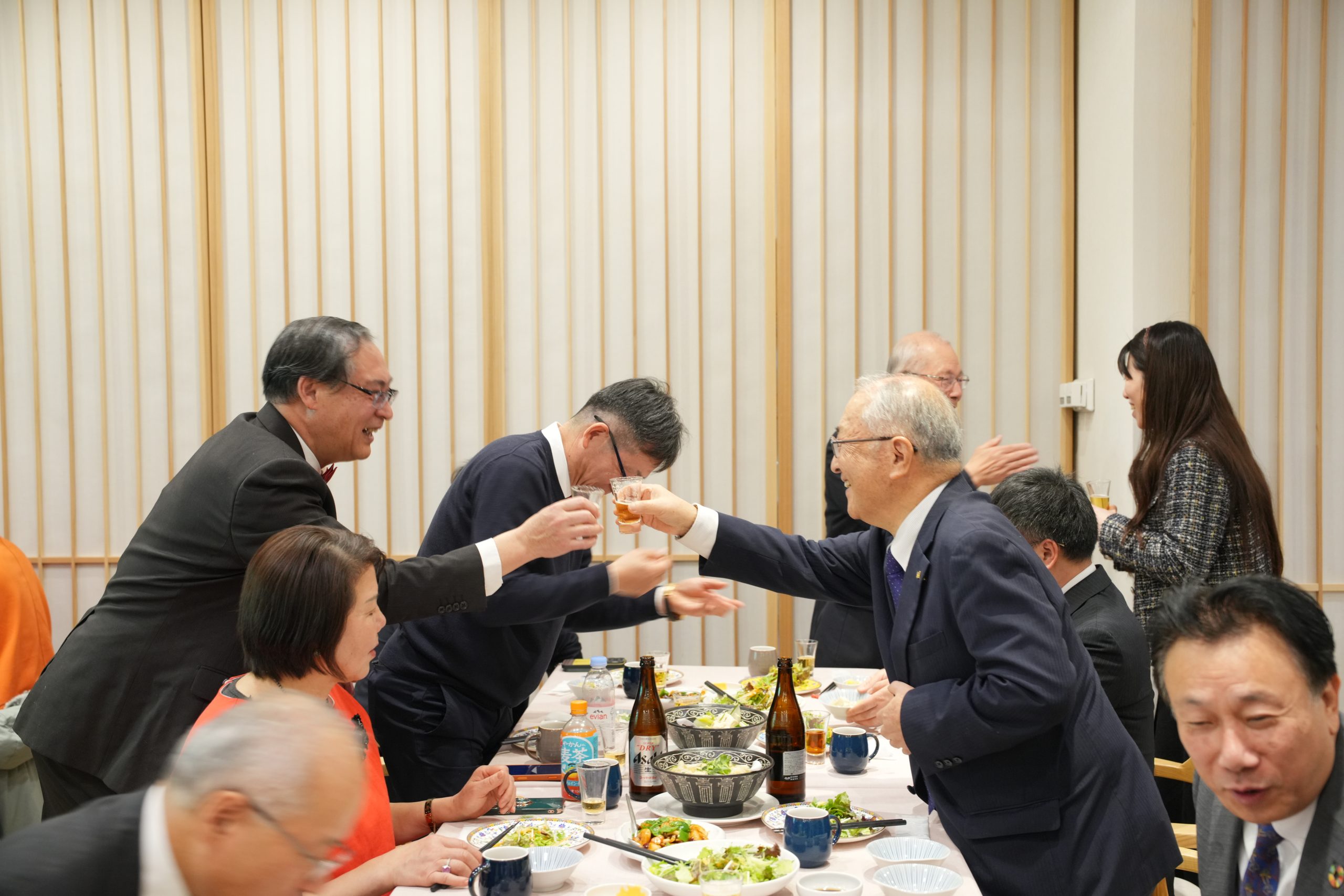 在嘉宾介绍与祝酒环节后,上海大学日本校友会副会长王寅浩带领全场举杯,祝愿校友们一切顺利,校友会在大家支持下越办越好。