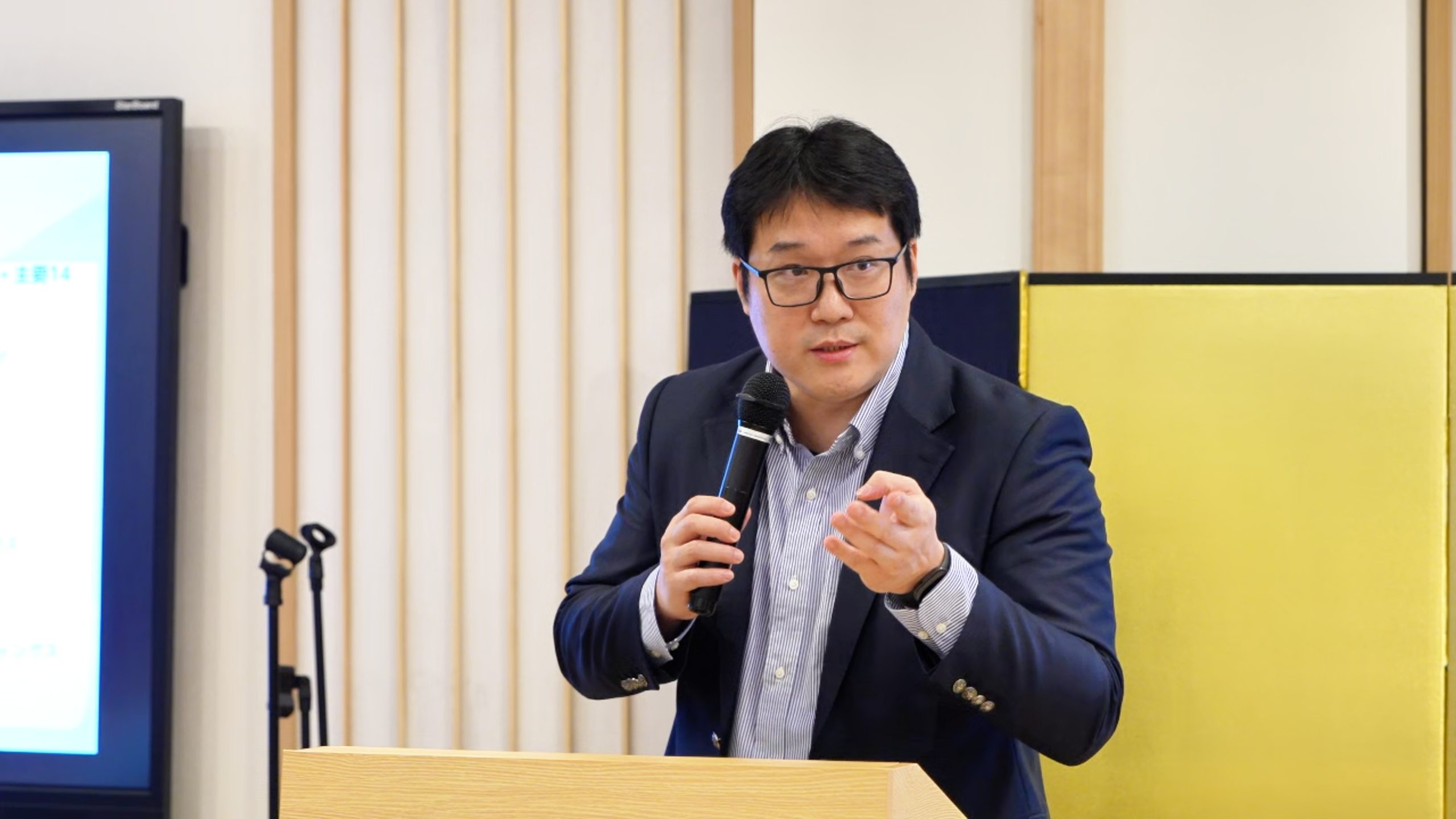 IT领域的代表、上海大学日本校友会理事姜骏分享创业实践,展示由团队开发的签到与抽奖系统,用技术提升活动效率与体验。