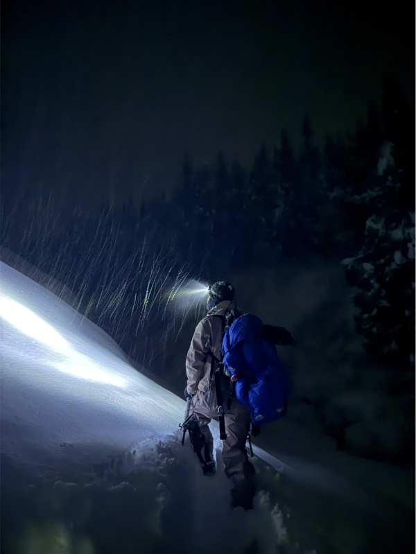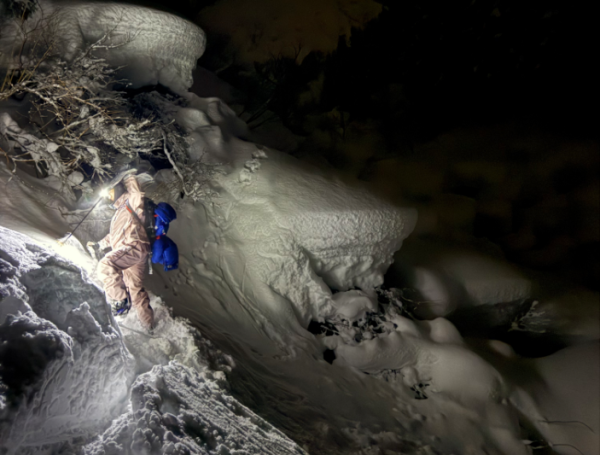 一位来自上海的滑雪爱好者也在雪友群中表达了希望前往当地进行营救的愿望。小张与这位滑雪爱好者迅速汇合,两人沟通了路线和方案后,随即驱车前往八海山区域。1月24日凌晨1点30分左右,两人开启营救,向被困游客所在的雪山深处行进。