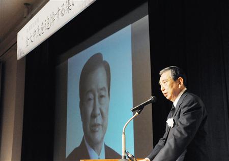 集会上,河野洋平致辞说:“金大中不仅宣传和平、民主主义与人权,并且亲自实践。是我最令人尊敬的人。金大中生前实现了南北对话,并且果断地开放了日本文化,促进了日韩友好关系。