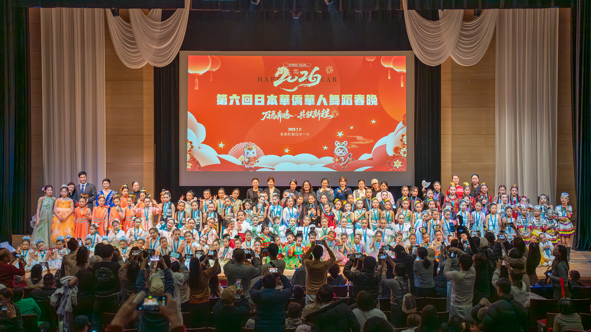 “马跃新程,心舞东方。”2026年2月11日,由日中文化交流联合会主办、东京华舞舞蹈学校协办的第六届日本华侨华人舞蹈春晚在东京有乐町朝日大厅举行。在日侨界、教育界、经贸界、媒体界的代表共一千余人齐聚一堂,同享一场集舞蹈、声乐、器乐、诗词、民俗于一体的艺术盛宴。