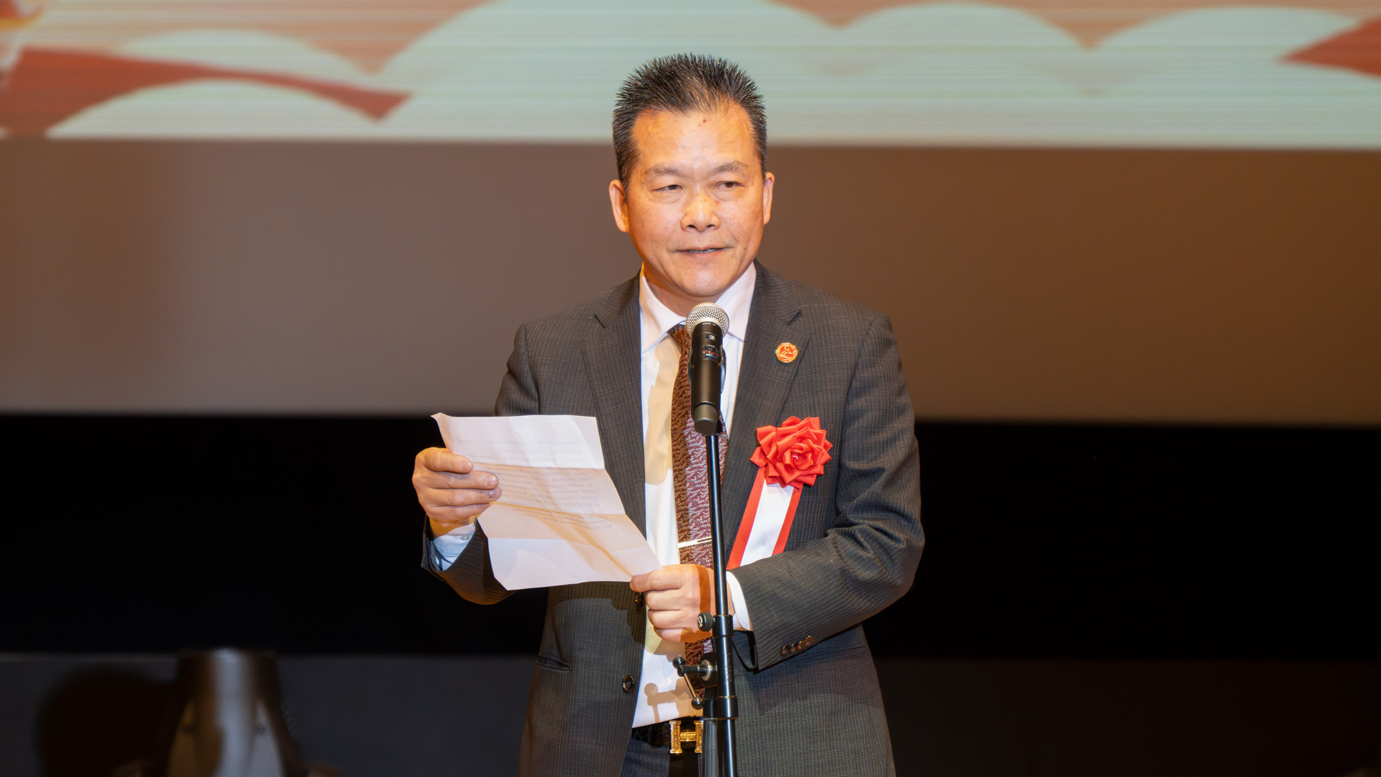 中国驻日本大使馆领事王宝锋“受陈巍总领事之托,谨代表中国驻日本大使馆向在日侨胞及各界友人致以诚挚的节日问候”。在致辞中,他介绍了祖国“十四五”规划所取得的伟大成就,展示了祖国“十五五”规划的壮丽蓝图。并表示,“中国人民有坚定的意志捍卫国家核心利益,维护世界和平稳定,推动构建人类命运共同体。”他肯定了第六届日本华侨华人舞蹈春晚,是中华优秀传统文化在海外的生动展现。希望通过这样精彩的文化活动,让更多海外朋友感受到中华文化的魅力,进一步促进文明交流互鉴。“祖国始终是带着侨胞最坚强的后盾”,大使馆将继续践行外交为民的宗旨,提供更优质更暖心的服务,祝愿祖国繁荣昌盛,国泰民安,祝愿大家新年有所成就。