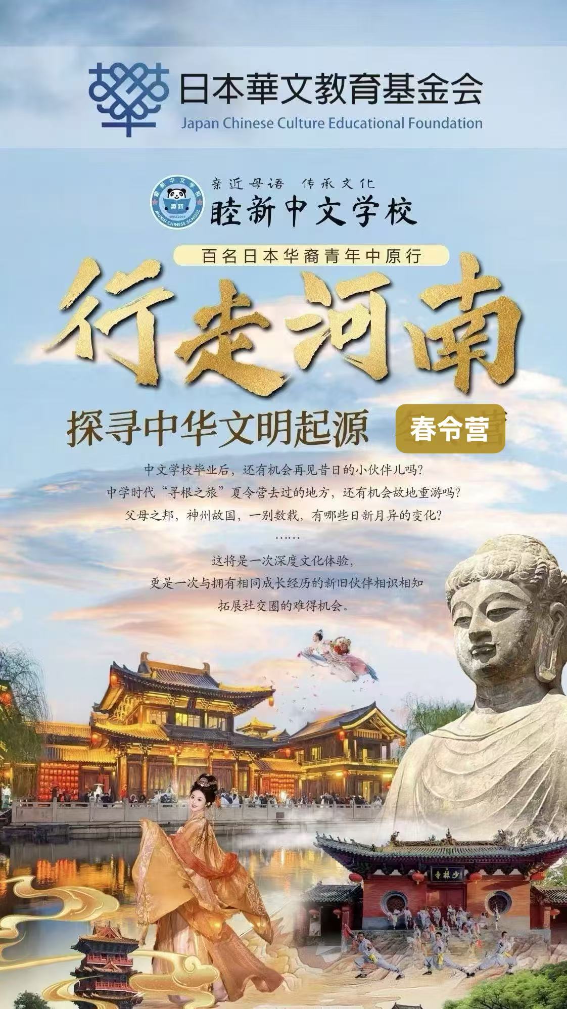 为引导海外华裔青年深入了解中华文明源流,强化对中华文化整体脉络与精神根基的情感,增强文化认同与文明自觉,由日本华文教育基金会主办的2026年“行走河南·探寻中华文明起源”春令营将正式启动。春令营活动由睦新中文学校具体组织实施,河南路仕达文旅公司负责在豫接待与行程执行。