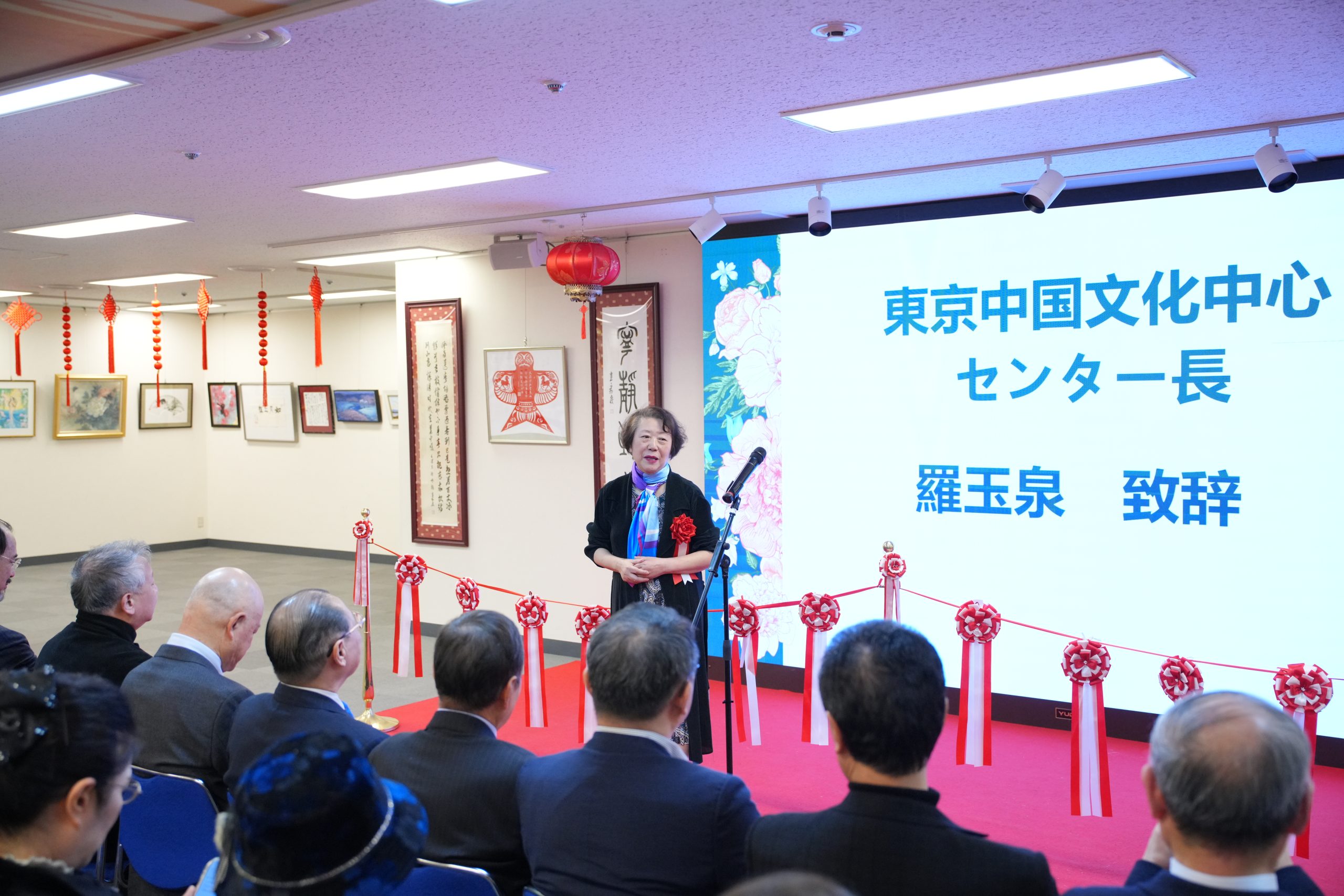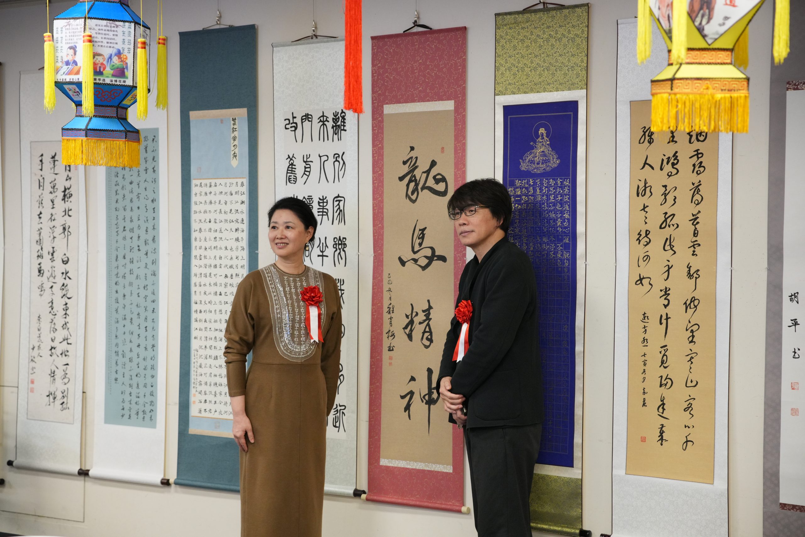 东京中国文化中心主任罗玉泉与日本华人女性书法协会会长宣家庆代表主办方向到场嘉宾表示欢迎,并向长期支持海外中华文化传播的艺术家与各界人士致以诚挚感谢。