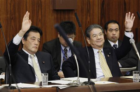 日本外相冈田克和防卫相北泽俊美在参院外交防卫委员会接受质询。