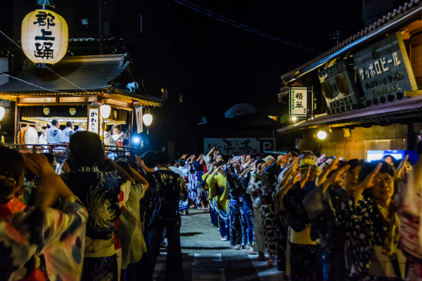 随着鼓声响起,舞蹈终于开始了。“那是难以言喻、超乎想象、宛如置身梦幻世界的舞蹈,真可谓是令人惊叹之舞。”她们一齐向前迈出右脚,但脚步却似滑动一般,草履从不离地。同时,白皙的手不停地摇曳摆动。我忽然闪过一个念头:我看到的,会不会是某种太古之物,甚至是在这东方历史被记录之前便已存在,或许自那朦胧的“神代”就已流传下来的东西呢?这盂兰盆舞,是否象征着在数不清的悠长岁月中被遗忘其含义的动作呢?