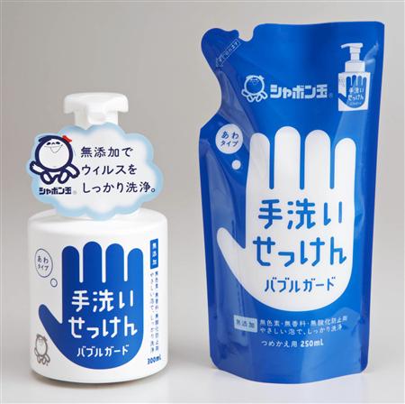 日本“肥皂泡香皂”公司11月24日宣布,将从12月起发售对新型流感病菌有效果的无添加洗手液“Bubble Guard”。