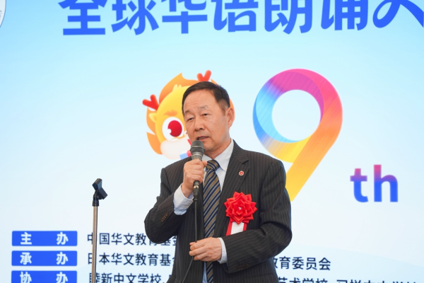 颁奖典礼启动后,全华联会长张书明发表致辞。他指出,本届赛事是全球华语朗诵大赛在日本的第四次举办,也是日本华文教育基金会与全华联华文教育委员会首次领衔承办,意义非凡。张书明会长表示,今天站在舞台上的每一位选手,都是文化的传播者,他们的声音不仅承载着个人的情感,也连接着共同的文化记忆。他对所有参赛选手、评委老师、各位家长及为本次活动付出辛勤努力的组织者和志愿者致以诚挚感谢,并表示全华联将继续搭建这样的文化平台,促进全球华人交流互鉴,推动中华文化走向更广阔的世界舞台。