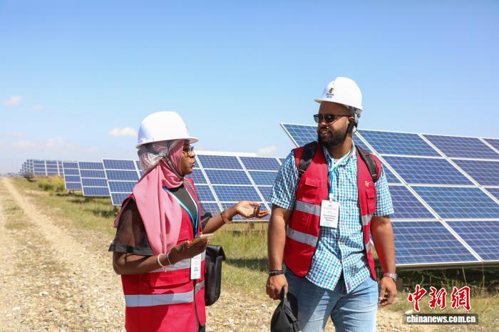 2025年9月12日,第九届中非青年大联欢代表团和非洲记者团一行来到青海省一光伏产业园区,实地了解青海清洁能源发展。中新社记者 马铭言 摄