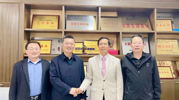 4月21日汪先恩教授在徐四新常委的陪同下访问了母校望江二中,一行人受到校党总支书记殷国斌、校长徐朝红等校领导的热情接待。据殷国斌书记介绍,望江二中创建于1958年,1980年被确定为安庆地区重点高中,近年来学校先后被授予“西安交大卓越生源基地”“南京大学最佳生源基地”“清华大学生源中学”等称号,荣获“东南大学优质生源贡献奖”,为高一级大专院校输送了大批优秀人才。