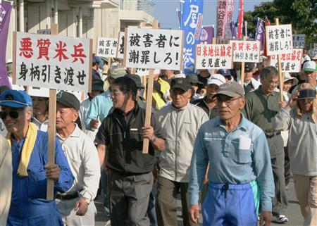 冲绳县读谷村举行集会要求美军交出交通肇事逃逸的士兵。