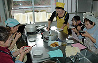 然后,大家共同品尝,并且互相教授语言:中国留学生教当地市民学说中文的“好吃”,当地市民则传授福知山的方言。大家还互相介绍了中日各自的饮食习惯等等。
