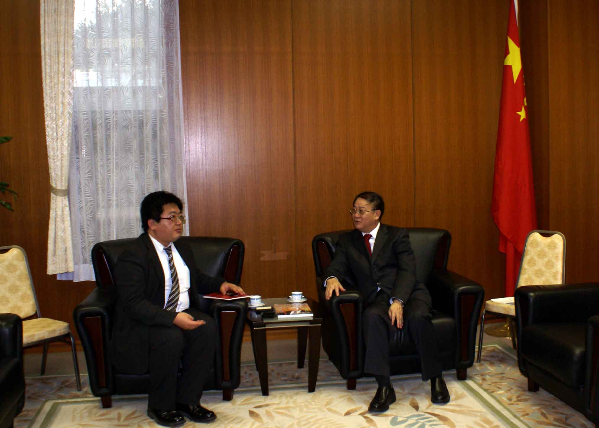 武树民总领事接受《福冈经济月刊》杂志记者专访。(日本新华侨报网图片)