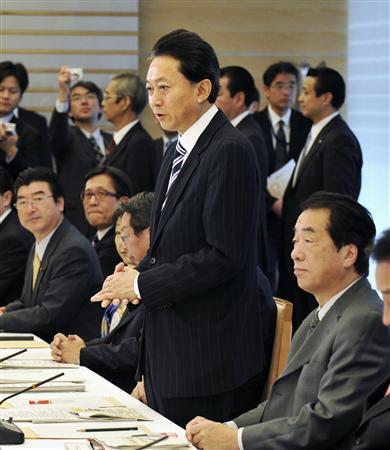 日本首相鸠山由纪夫30日上午在官邸出席发展战略制定会议并致辞。