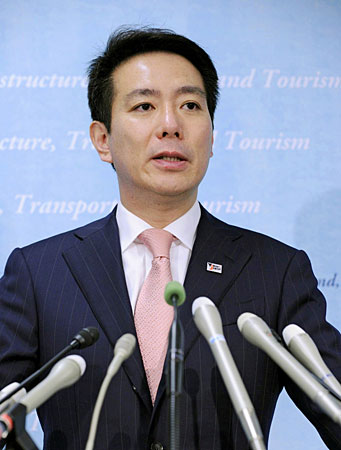 国土交通相前原诚司召开记者会,表示将通过法律程序重组日航。