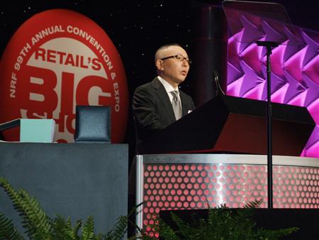 日本迅销集团董事长兼社长柳井正12日在纽约出席全美零售业协会国际品牌奖的颁奖仪式。