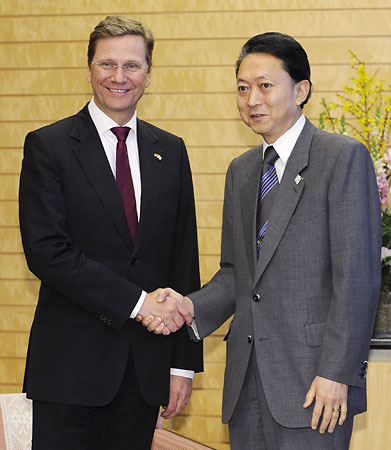 鸠山由纪夫会见德国外长韦斯特韦勒(左)