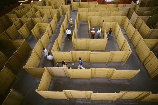 人们在京都的一座迷宫中行走。迷宫探险在日本很流行。