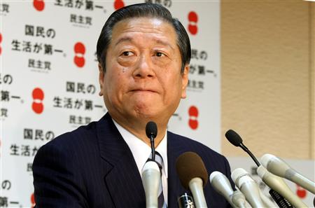 日本民主党干事长小泽一郎在东京永田町的党总部举行记者会。