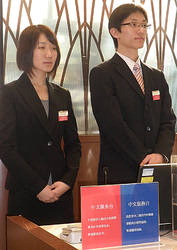 2月1日,在日本札幌的中国人王月仙和郑中华成为三越百货札幌店的大堂导购员。这是三越百货在2月5日至11日的“札幌冰雪节”期间和中国旧历新年之际,为了迎接说汉语的客人而特别增添的服务项目。作为公司评选出来的招牌员工,王月仙和郑中华将从2月1日至21日,代表三越百货为来自大中华圈的游客提供高质量的服务。