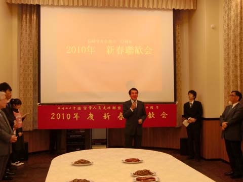 中国驻长崎总领事滕安军代表驻长崎总领馆向中国留学生和各界来宾致以新春的问候,同时高度赞扬了长崎中国留学生学友会及各院校中国留学生团体所做学生工作。滕安军总领事还指出,中国留学生飘洋过海来日求学,他们虽然远离父母和家乡,但长崎县浓厚的中日民间友好氛围和热情友善的当地居民使中国留学生就像生活在家乡一样,长崎不是故乡但胜似故乡,华侨前辈和日中友好人士不是亲人胜似亲人,希望留学生朋友们谨记这份友好情谊,学业有成之后在自身的工作岗位上继续为中日友好事业添砖加瓦。