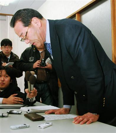 北海道罗臼渔协田中胜博组合长在记者会上通报情况
