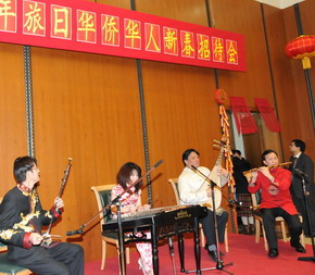 招待会上,“日本华侨华人联合总会”会长符易亨代表侨胞致辞,“日本新华侨华人会”会长陈玳珩代表侨胞祝酒,对祖国的巨大发展深感荣耀和自豪,表示旅日侨胞的更好发展有赖于祖国强大和中日友好,新老侨胞将进一步加强团结协作,为振兴中华、实现祖国和平统一和促进中日友好做出新贡献!华人艺术家演奏了“喜洋洋”、“步步高”、“花好月圆”等民族乐曲,会场充满了欢乐祥和的节日气氛。