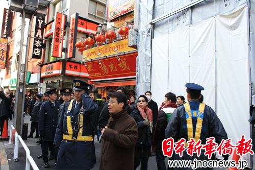 2月14日上午10点多钟,记者前往池袋的“阳光城”物产店。只见店里的员工在有条不紊不稳地做着开店准备工作。池袋警察署的警员也到这里进行防护指导,告诉店员们:“如果对方挑衅的话,你们完全可以不理睬。有我们在现场,一定会保护你们的。”