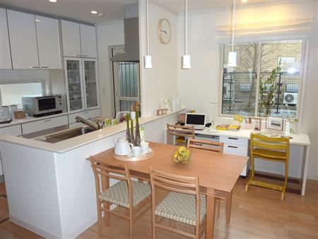 积水化学工业公司展示新款独户住宅的样板房。用餐空间的一角放有孩子的学习桌。