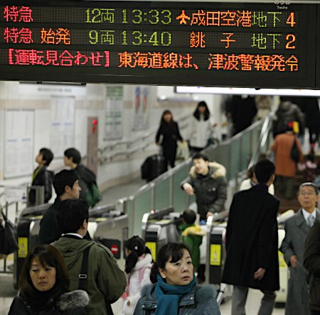 海啸警报致使JR部分列车停运,旅客滞留车站